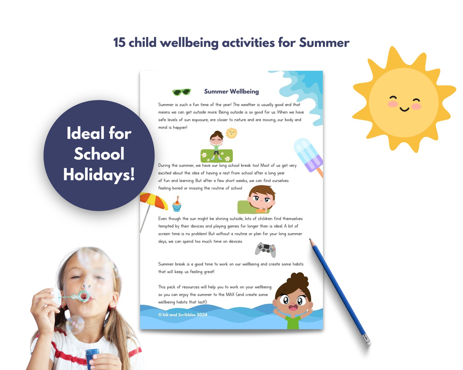 Summer Wellbeing and Mindfulness Activity Worksheets for Kids