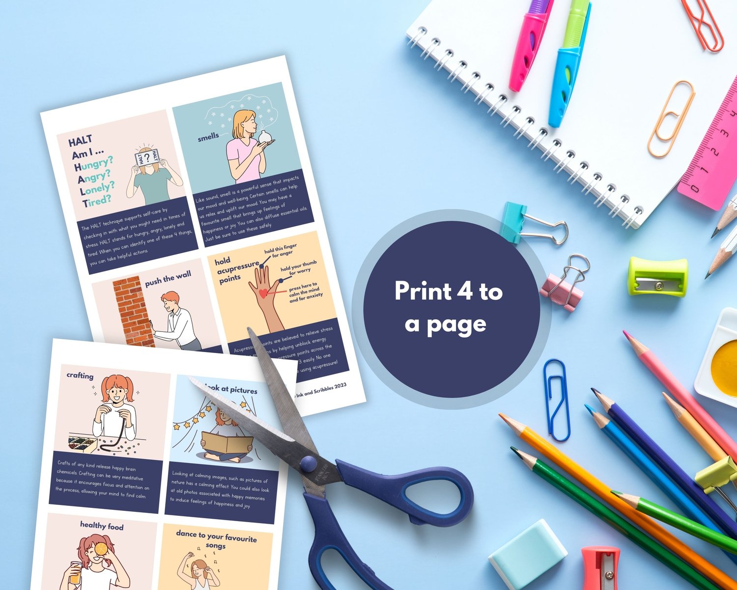 Although these coping skill cards may help teenagers struggling with their mental health, they have been designed to support teens through general or common emotional challenges. Should you use them with teenagers experiencing mental health concerns, please use carefully to avoid triggers and note our disclaimer that states our product is not a replacement for professional support.