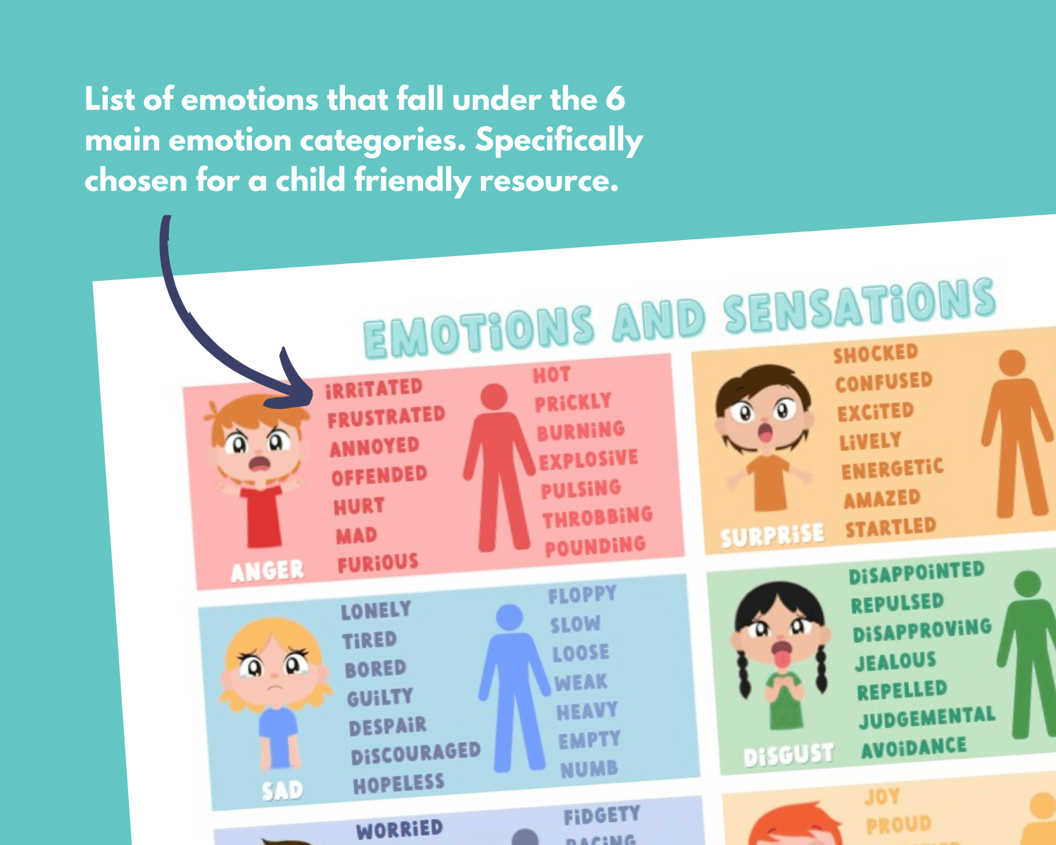 We've designed this list to be accessible for younger children, carefully choosing emotions to include so that the sheet isn't overwhelming and children can relate to. We've also chosen vocabulary that is child friendly and will help them explore their emotional experiences.