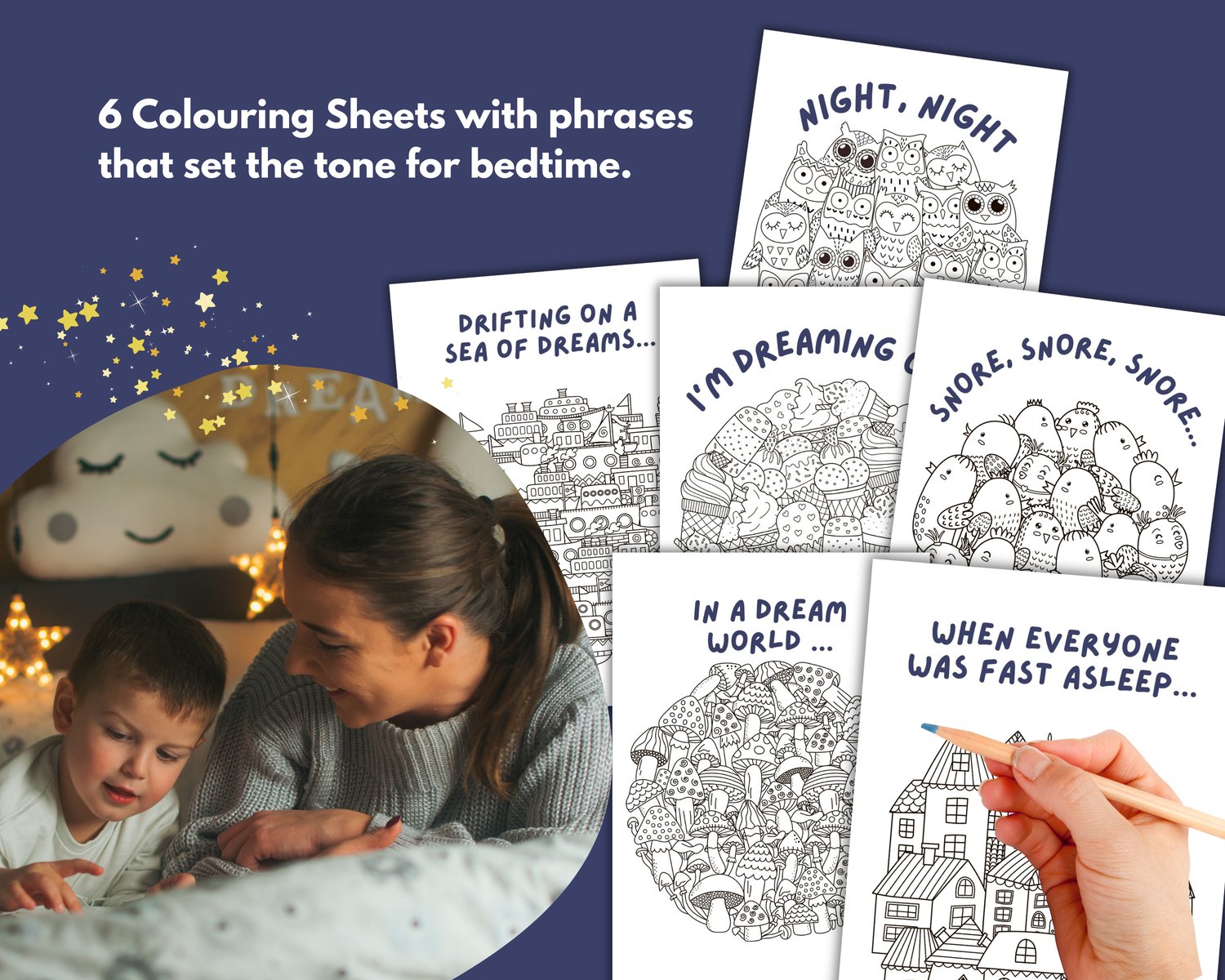 Each section has an introduction page. We suggest printing this lovely activity book and using a folder to create your child's very own bedtime book. Over time, you'll create lovely moments together which will be forever recorded in this book! Alternatively, stick the sheets into a book, bind your own book or clip together in with a clip.