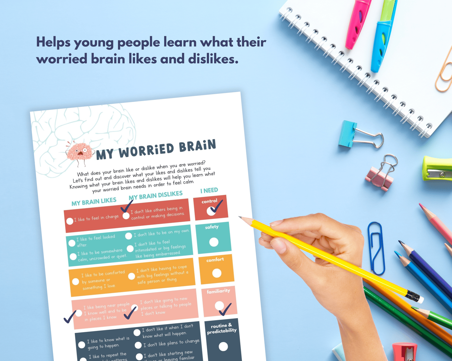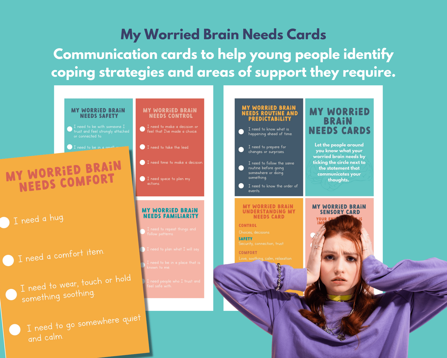 - My Worried Brain Needs Cards (for identifying coping strategies and communicating them)