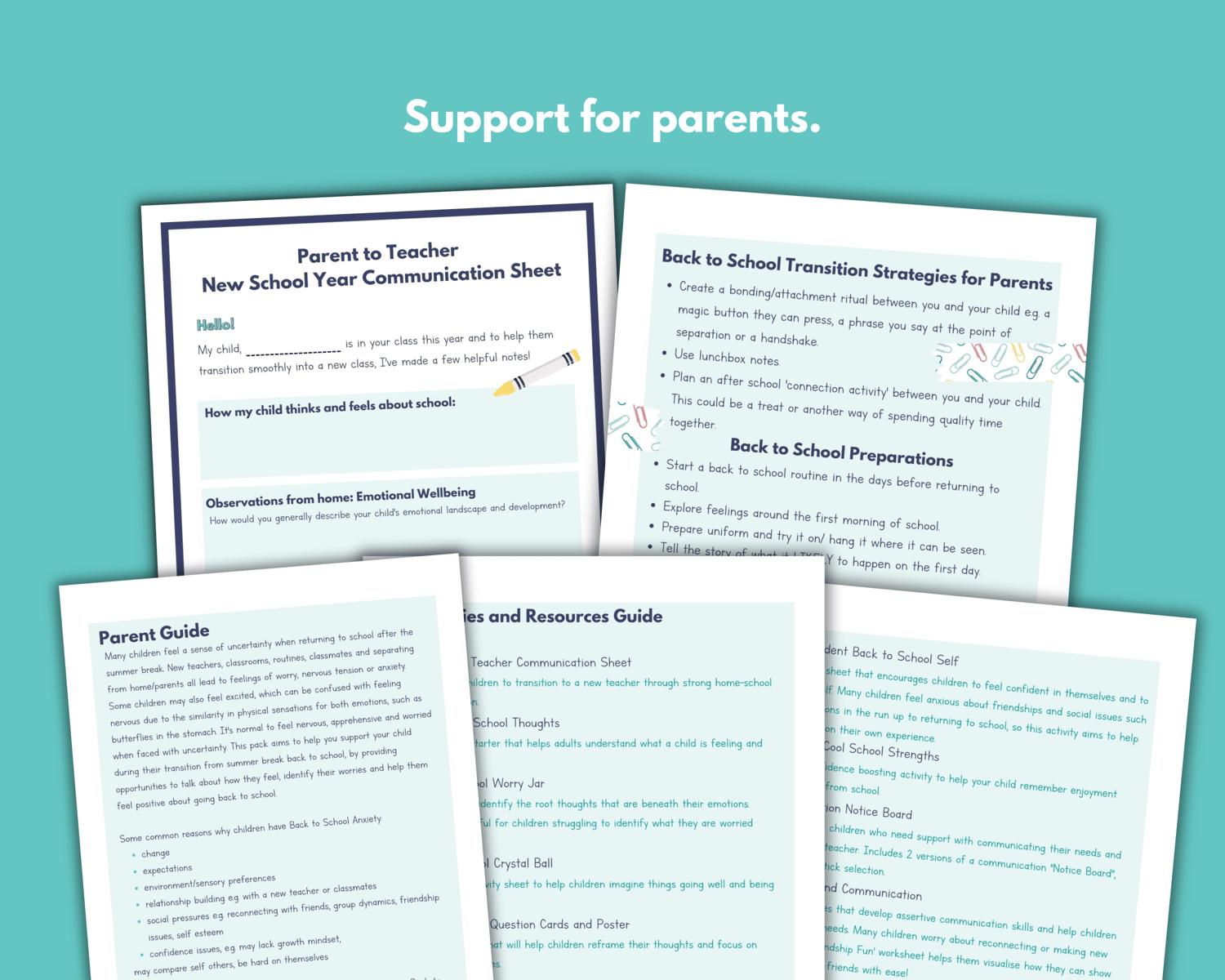 - Communication Slips, a variety of print and cut out slips that will help your child communicate their worries or issues with their teacher.