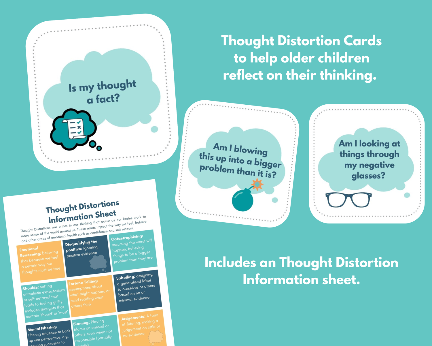 - Cognitive Distortion Cards to help children spot unhelpful thoughts
