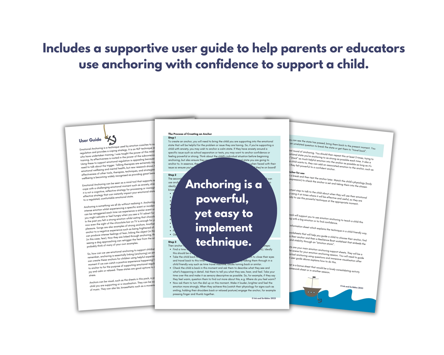 The Emotional Anchoring Pack is a visual resource to help children develop an ability to ride emotion storms. This is an emotion coaching technique we use with children to help them regulate big emotions such as worry, anxiety or stress and have created this pack to use within sessions. It's a powerful technique that utilises the power of the subconscious mind.