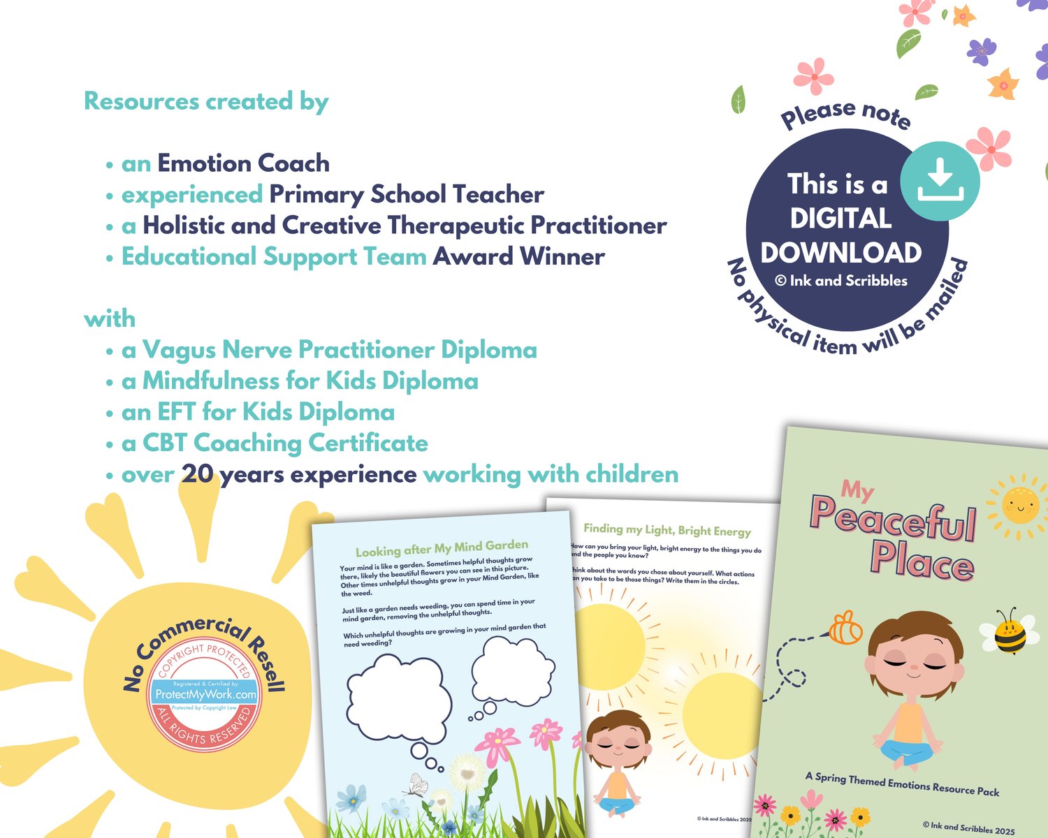 Spring Emotions Feelings Worksheet and Resource Pack for Kids, Spring SEL resources for classroom, teachers, kids, children, primary, elementary